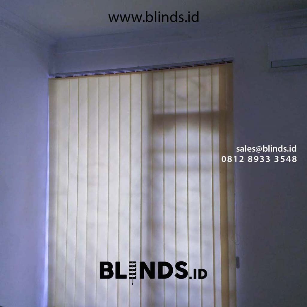 Dan tidak hanya pilihan warna saja, untuk series yang digunakan pun juga beragam namun untuk gambar vertical blinds dimout di atas adalah series 80 serta menggunakan jenis box standar di karenakan ukurannya yang juga tidak terlalu besar.